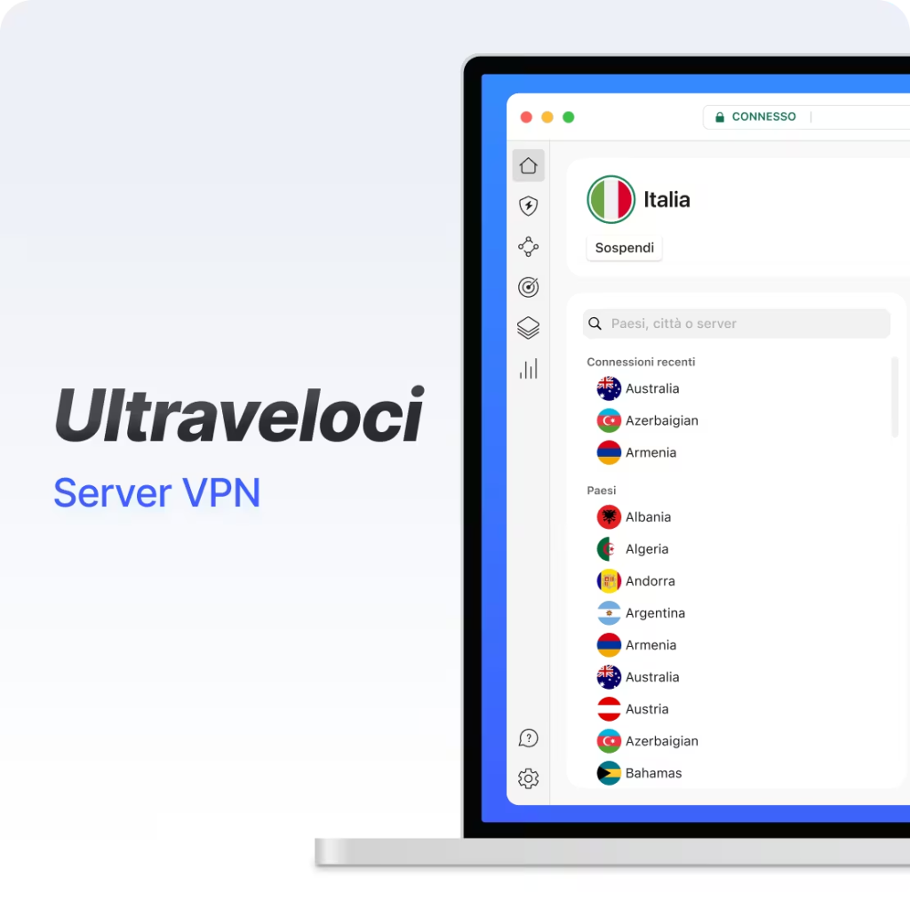 - Kill switch: interrompe la connessione Internet se la VPN si disconnette improvvisamente, evitando che il traffico esca “in chiaro”.