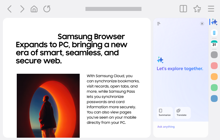 - chi usa già Samsung Browser su smartphone e tablet e vuole la stessa esperienza su Windows;